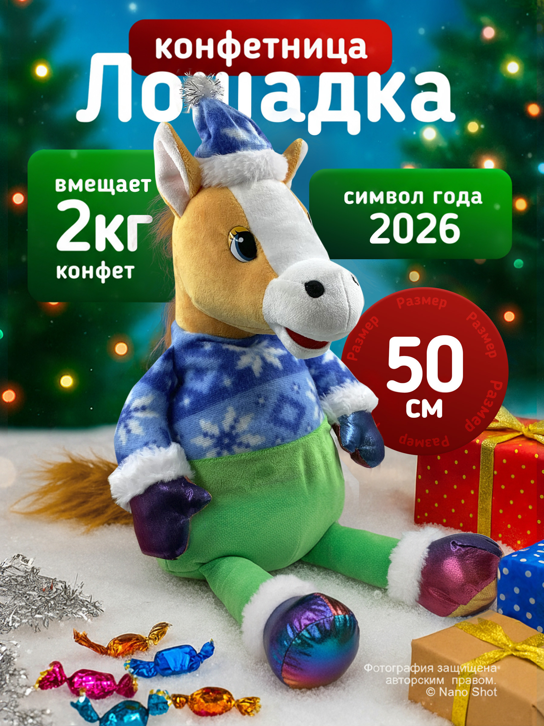 Эта мягкая игрушка станет отличным подарком на Новый год, особенно для девочек и мальчиков. Она будет радовать детей в течение всего года, оставаясь актуальной и в 2026 году. Лошадка-конфетница — это не просто игрушка, а символ нового года, который принесет удачу и счастье в дом.