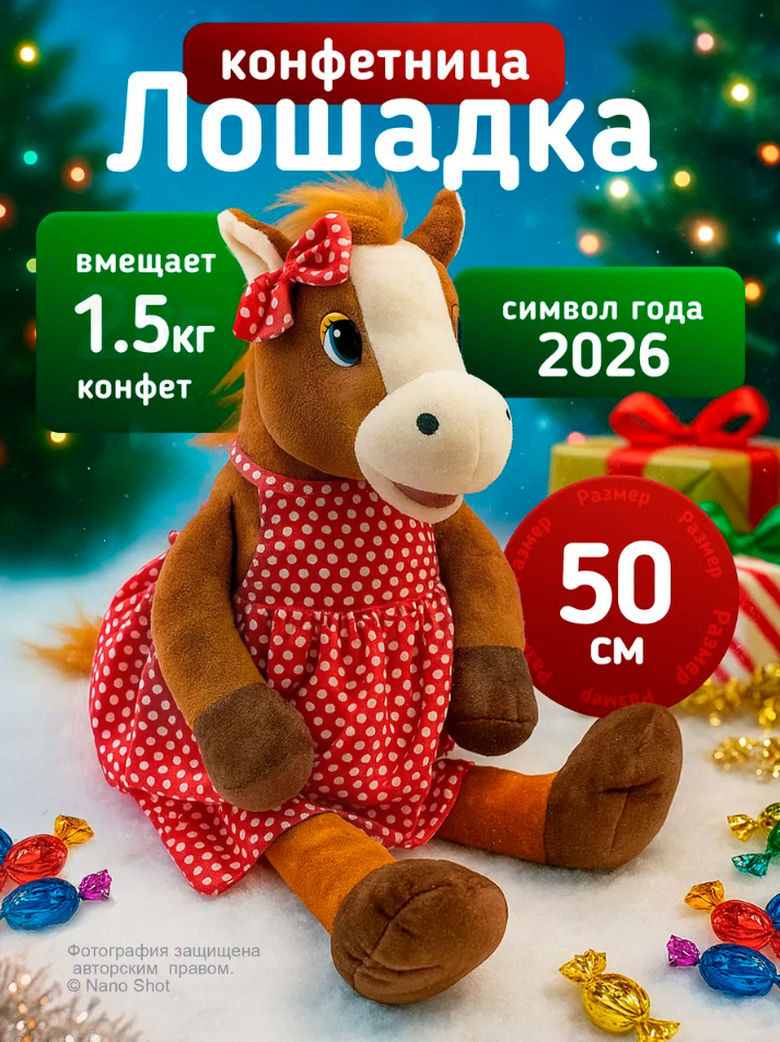 Эта мягкая игрушка станет отличным подарком на Новый год, особенно для девочек и мальчиков. Она будет радовать детей в течение всего года, оставаясь актуальной и в 2026 году. Лошадка-конфетница — это не просто игрушка, а символ нового года, который принесет удачу и счастье в дом.