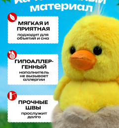 Плюшевый цыпленок — это не только развлечение для детей, но и стильный элемент декора, который украсит любую комнату. Убедитесь, что ваш ребенок будет счастлив этой игрушке, которая может стать его любимым компаньоном. Подойдет также в качестве креативного подарка на Пасху для взрослых членов семьи.