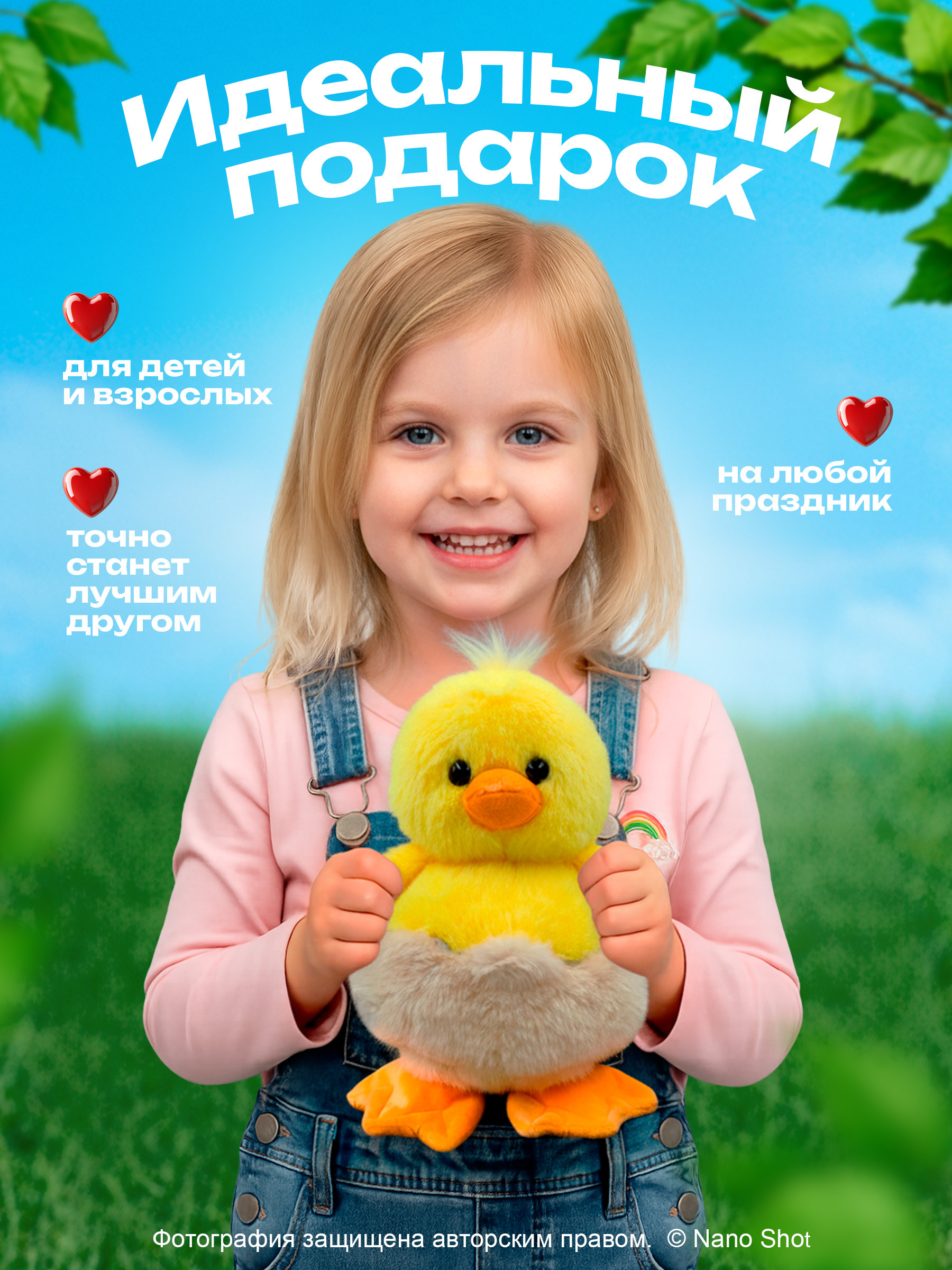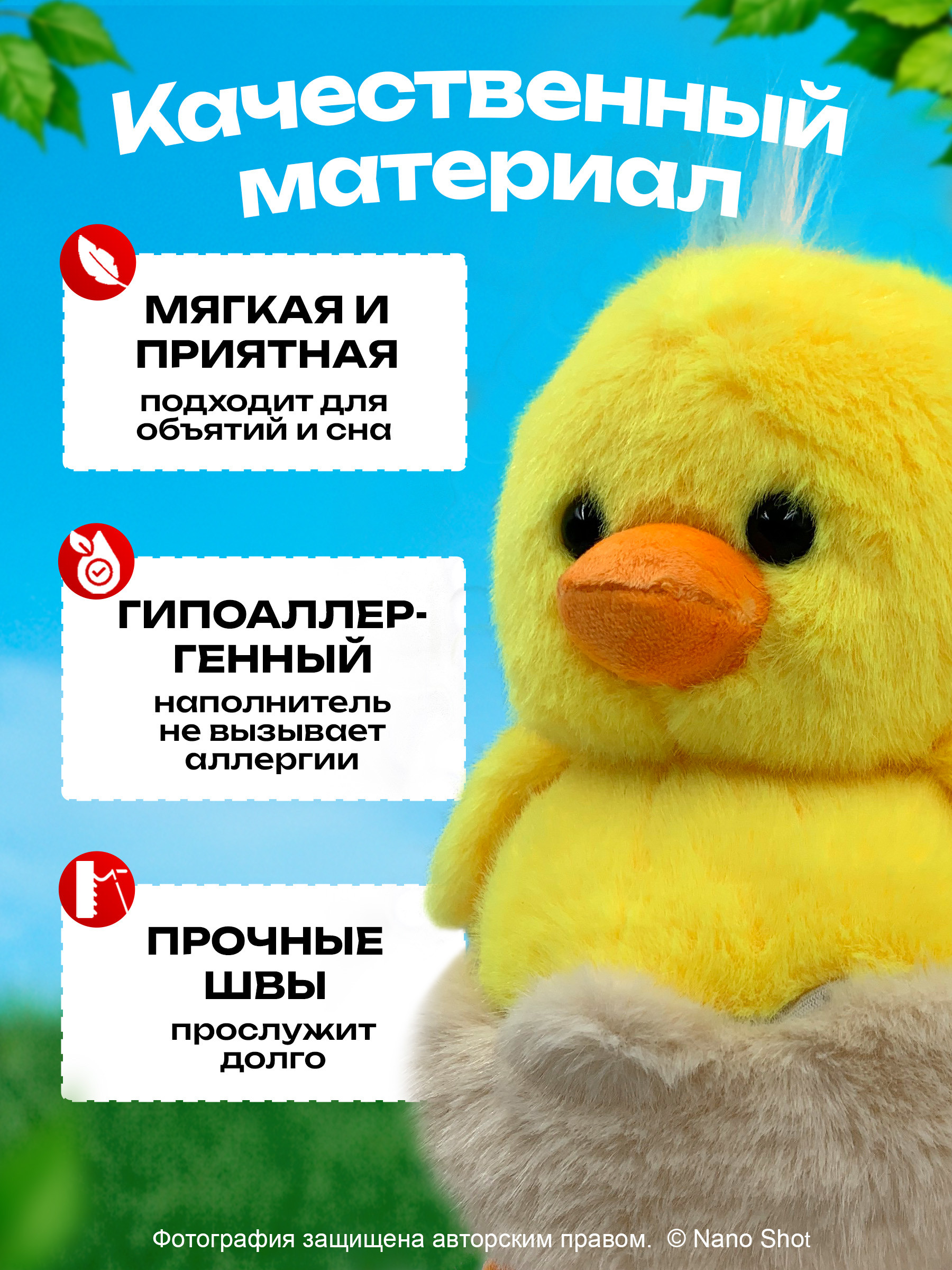 Мягкая игрушка цыпленок — идеальный подарок для детей и взрослых. Эта плюшевая игрушка выполнена в виде цыпленка, которая обязательно понравится всем членам семьи. Изготовленная из высококачественных материалов, игрушка обладает мягкой текстурой и снабжена гипоаллергенным наполнителем, что делает ее безопасной даже для самых маленьких.