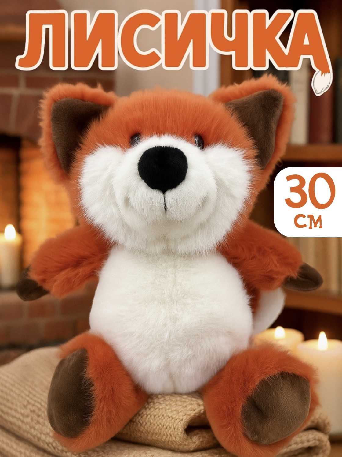 Мягкая игрушка обнимашка плюшевая рыжая лиса, 30 см