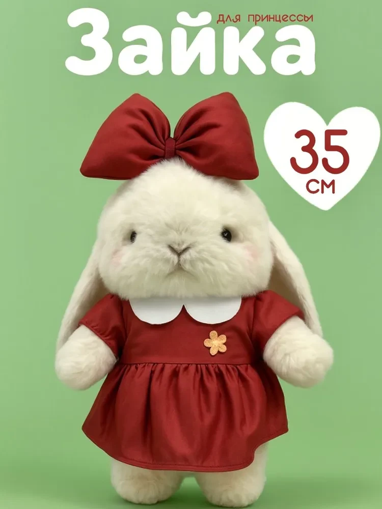 Мягкая игрушка обнимашка Зайчик в красном платье, 35 см
