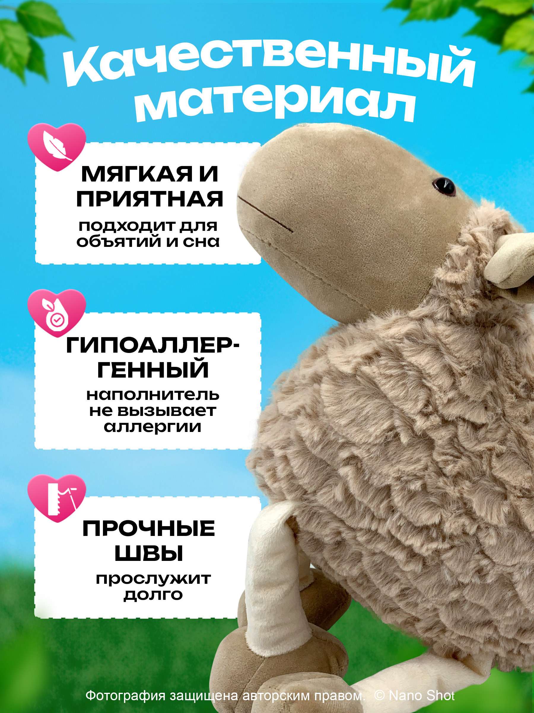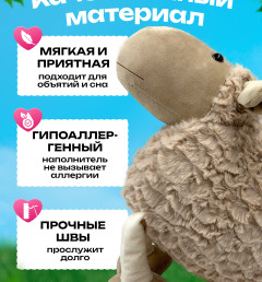 С ней удобно засыпать, ведь она предназначена не только для активных игр, но и для спокойного сна, создавая комфорт и чувство безопасности. Плюшевая овечка станет неотъемлемой частью ритуала приготовления ко сну, помогая детям расслабиться и быстрее уснуть.