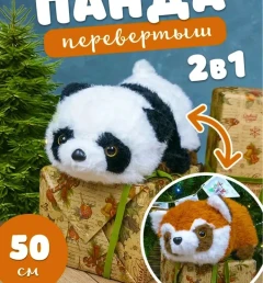 Мягкая игрушка Перевертыш Белая Панда и Красный Енот, 50 см