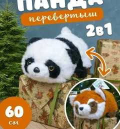 Мягкая игрушка Перевертыш Белая Панда и Красный Енот, 60 см