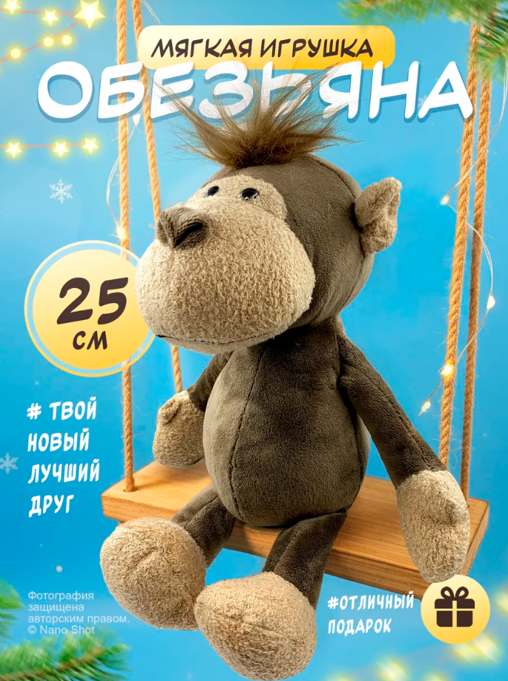 Мягкая игрушка плюшевая обезьяна, 25 см