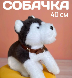 Мягкая игрушка собака в ошейнике 40 см, серая