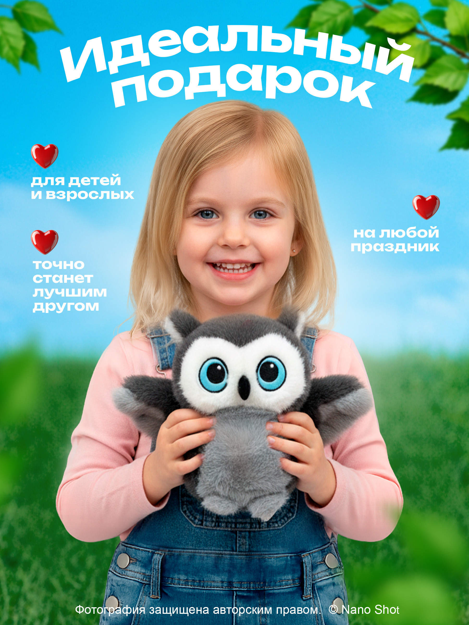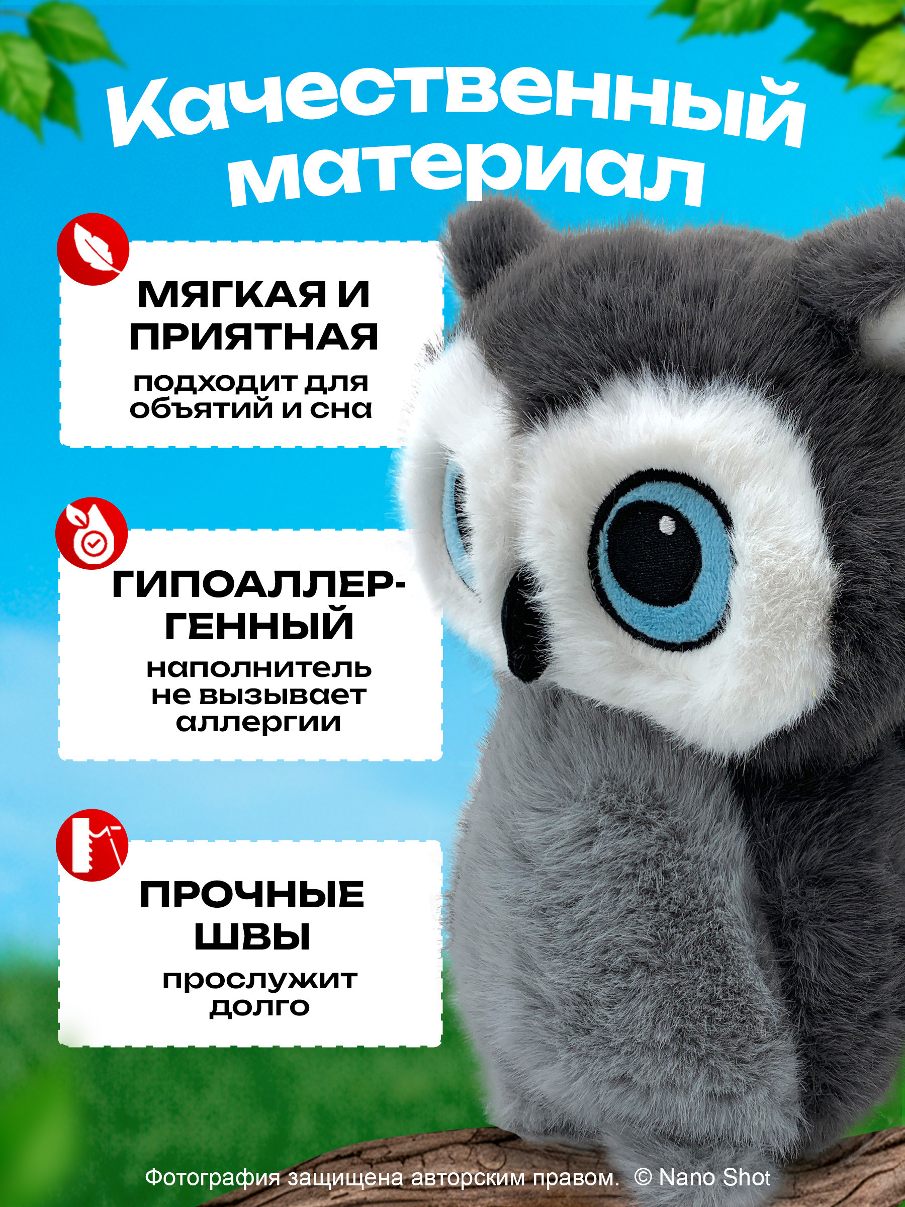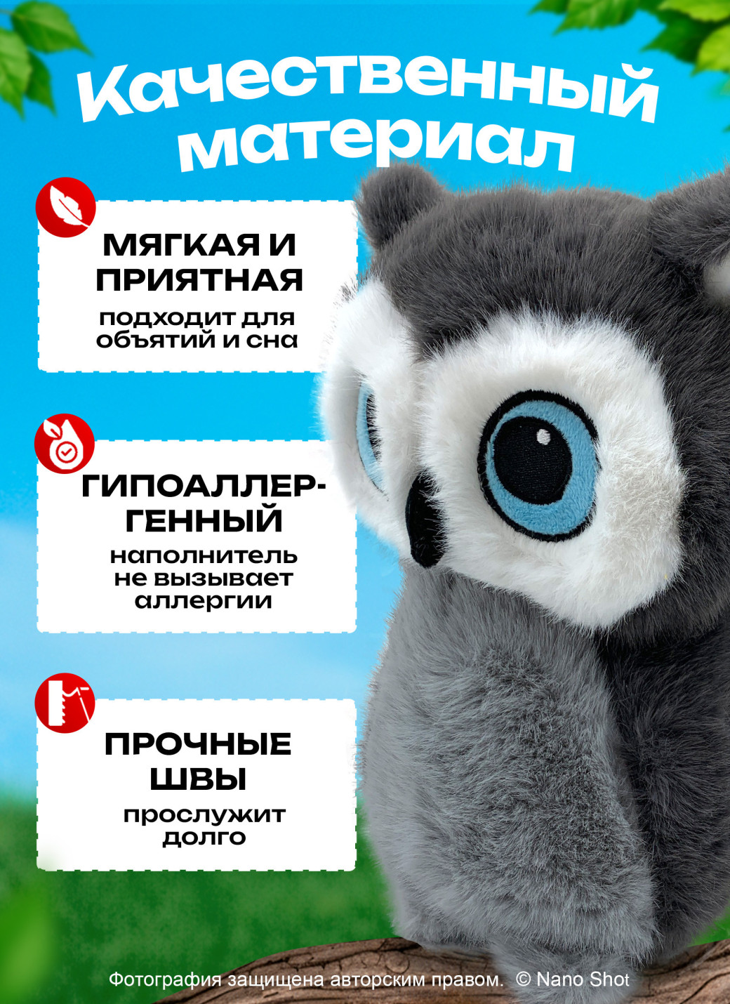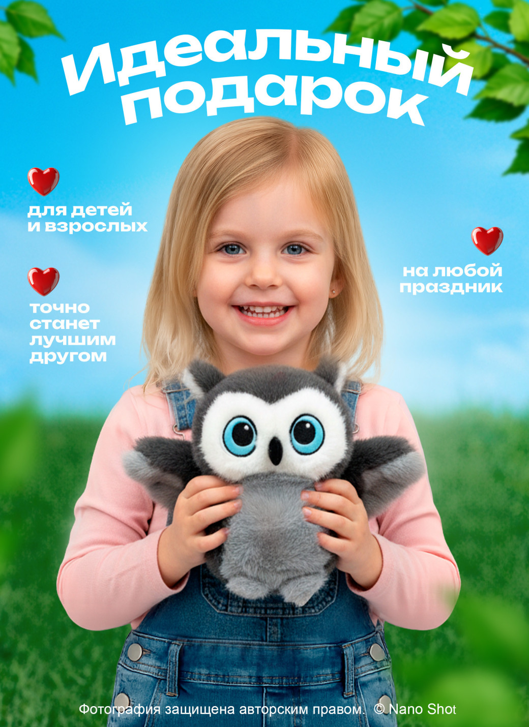 Совенок мягкий прекрасно подходит для веселых игр и обнимашек, становясь верным другом вашего ребенка. Пушистая и приятная на ощупь, она создаст уютную атмосферу в любой детской комнате и украсит ее интерьер. Игрушка совенок выполнена с высоким уровнем детализации.