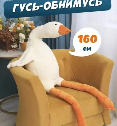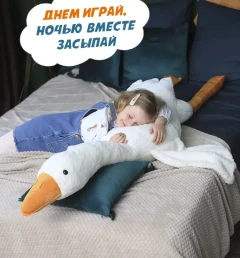 Мягкая игрушка-антистресс Гусь-обнимашка, гусь-обнимусь белый, 160 см