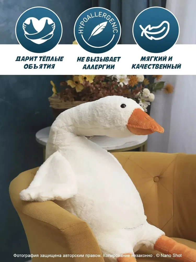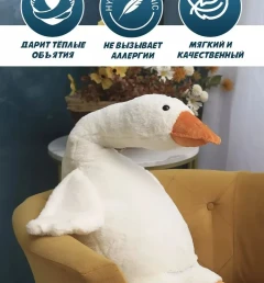 Гусь - обнимусь мягкая игрушка антистресс подушка. Мягкая игрушка Гусь обнимусь Яркая и веселая игрушка антистресс поднимет Вам настроение, обаятельный Гусь не оставит равнодушным никого он добавит в Ваш дом уют и станет незаменимым другом. Большой гусь-подушка изготовлен из безопасных материалов и аккуратно прошит. Обнимашка белый gussi очаровательный и нежный. Мягкая игрушка Гусь очень любим детьми и взрослыми. Подушка детская прекрасно подойдет для девочек и для мальчиков как антистресс, как декоративная подушка для детской комнаты, как игрушка - обнимашка, с которой можно спать. Этот красивый, стильный, милый и приятный на ощупь утенок прекрасно подойдет для дома и впишется в любой современный интерьер вашей комнаты. Гусь игрушка, которая будет актуальна и для праздника вашего ребёнка, ведь подарки детям должны приносить радость, мотивировать их на творчество. Для девочек плюшевый гусь может заменить их куклы и аксессуары, ведь этот гусь обнимусь просто предназначен для игр, для сна. Мягкая игрушка гусь изготовлена из безопасных материалов, имеет гипоаллергенный наполнитель холлофайбер. Игрушки антистресс представлены в размерах 50 см, 90 см, 130 см, 160 см и огромный гусь 190 см. Игрушка - обнимашка будет любимцем вашего ребенка и, конечно, не сможет оставить и вас равнодушными к этой детской подушке.