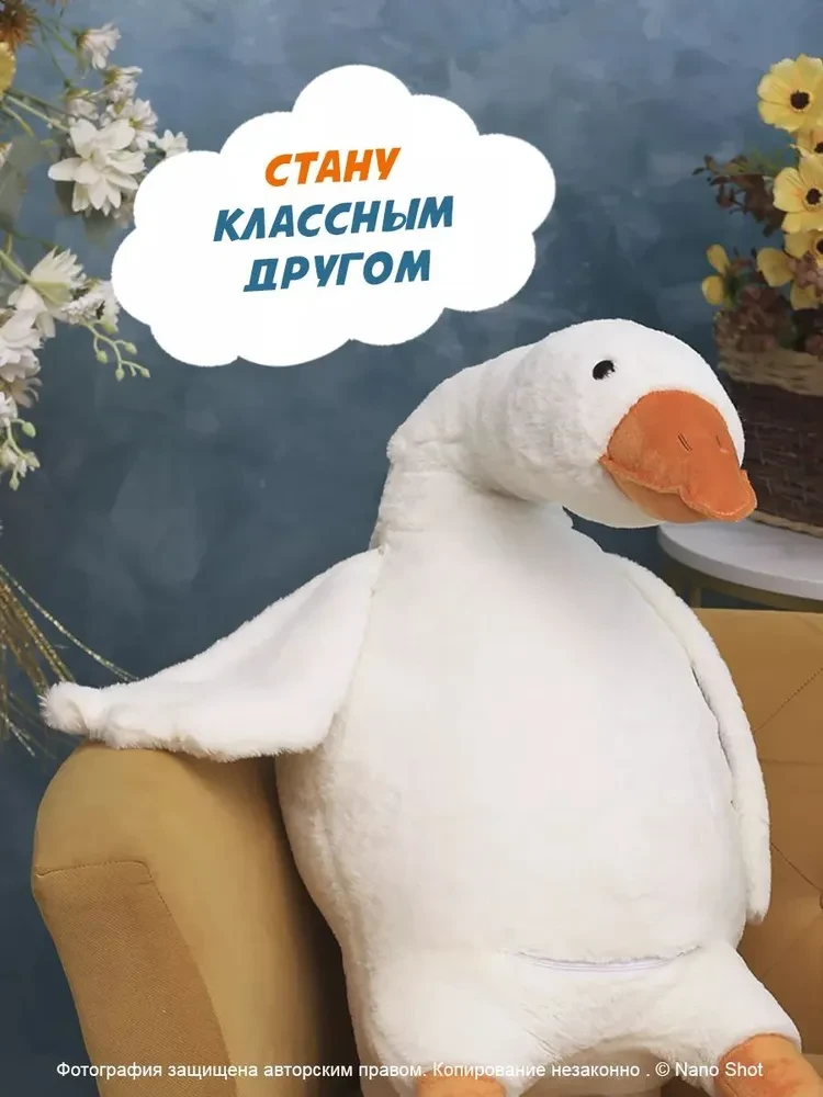 Мягкая игрушка-антистресс Гусь-обнимашка, гусь-обнимусь белый, 50 см