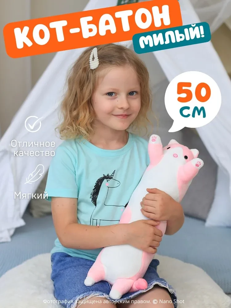 Ищете подарок для малыша, ребенка, подростка, взрослого или любимого человека? Мягкая игрушка Кот-батон - отличный выбор! Этот милый котик станет верным другом на протяжении многих лет. Он развивает у детей чувство уюта и безопасности, а также помогает развивать моторику и воображение. Благодаря мягкости и безопасности материалов, кот-батон подходит даже для новорожденных. Кот-батон идеально подходит как для мальчиков, так и для девочек. Его можно использовать как игрушку для дома, как подушку, так и для прогулок на свежем воздухе, можно спать на нём или брать в дорогу. Этот мягкий котик станет отличным подарком к любому празднику - день рождения, Новый год или просто так, чтобы порадовать близкого человека. Не упустите возможность порадовать родного человека прекрасным подарком - мягкой игрушкой- обнимашкой Кот-батоном!
