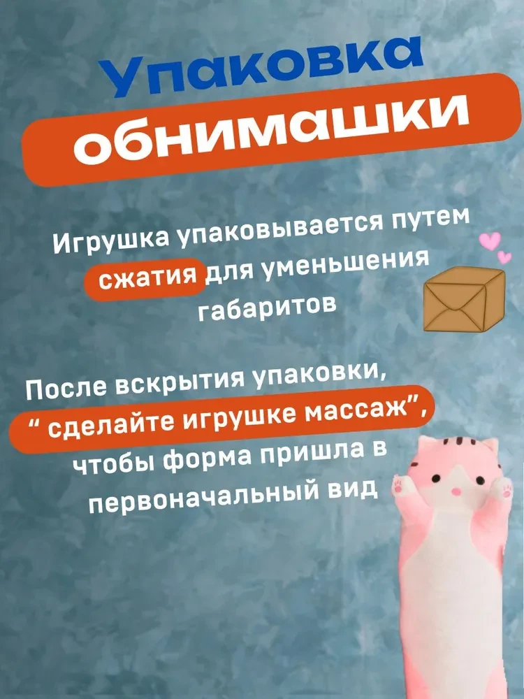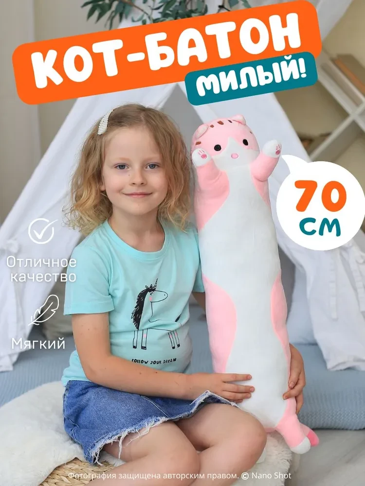 Ищете подарок для малыша, ребенка, подростка, взрослого или любимого человека? Мягкая игрушка Кот-батон - отличный выбор! Этот милый котик станет верным другом на протяжении многих лет. Он развивает у детей чувство уюта и безопасности, а также помогает развивать моторику и воображение. Благодаря мягкости и безопасности материалов, кот-батон подходит даже для новорожденных. Кот-батон идеально подходит как для мальчиков, так и для девочек. Его можно использовать как игрушку для дома, как подушку, так и для прогулок на свежем воздухе, можно спать на нём или брать в дорогу. Этот мягкий котик станет отличным подарком к любому празднику - день рождения, Новый год или просто так, чтобы порадовать близкого человека. Не упустите возможность порадовать родного человека прекрасным подарком - мягкой игрушкой- обнимашкой Кот-батоном!