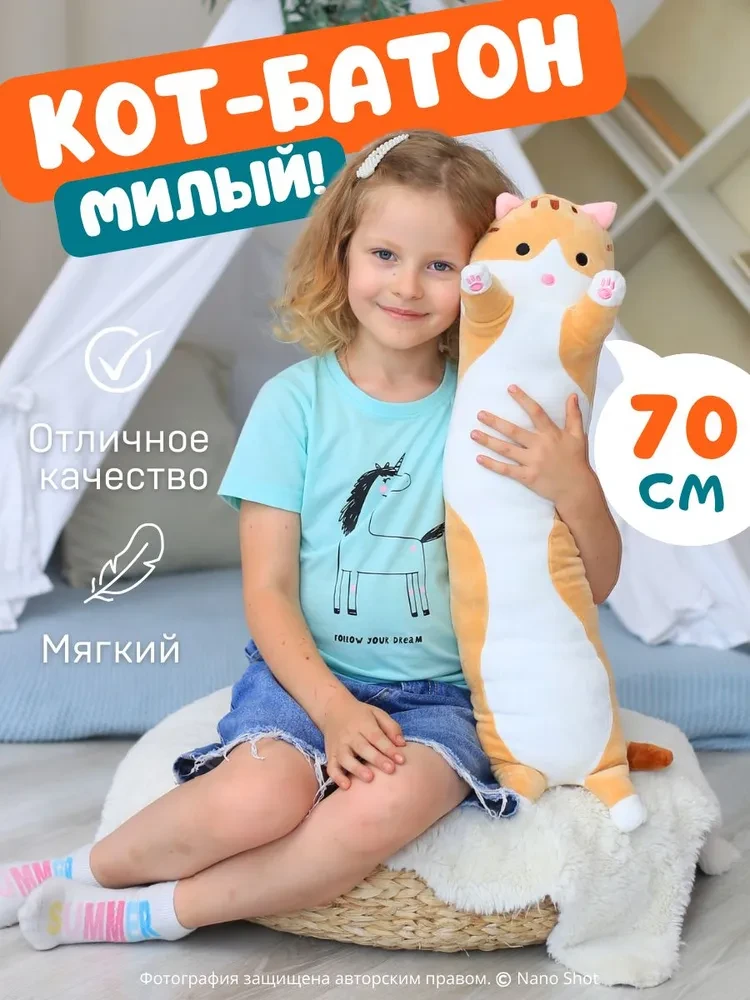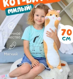 Ищете подарок для малыша, ребенка, подростка, взрослого или любимого человека? Мягкая игрушка Кот-батон - отличный выбор! Этот милый котик станет верным другом на протяжении многих лет. Он развивает у детей чувство уюта и безопасности, а также помогает развивать моторику и воображение. Благодаря мягкости и безопасности материалов, кот-батон подходит даже для новорожденных. Кот-батон идеально подходит как для мальчиков, так и для девочек. Его можно использовать как игрушку для дома, как подушку, так и для прогулок на свежем воздухе, можно спать на нём или брать в дорогу. Этот мягкий котик станет отличным подарком к любому празднику - день рождения, Новый год или просто так, чтобы порадовать близкого человека. Не упустите возможность порадовать родного человека прекрасным подарком - мягкой игрушкой- обнимашкой Кот-батоном!