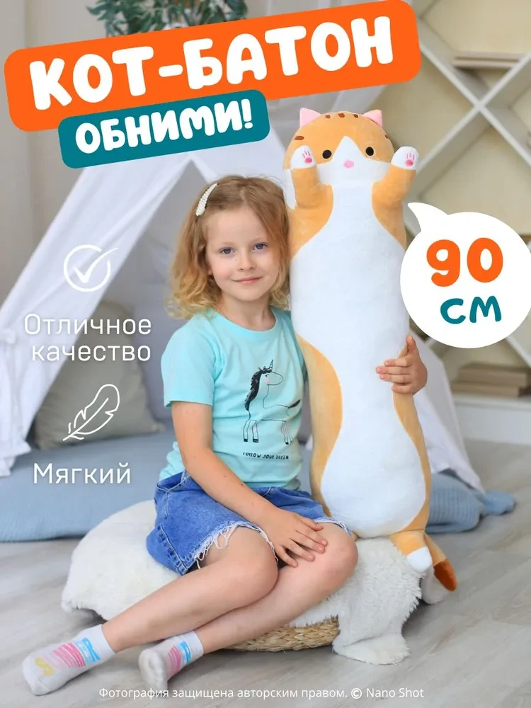 Ищете подарок для малыша, ребенка, подростка, взрослого или любимого человека? Мягкая игрушка Кот-батон - отличный выбор! Этот милый котик станет верным другом на протяжении многих лет. Он развивает у детей чувство уюта и безопасности, а также помогает развивать моторику и воображение. Благодаря мягкости и безопасности материалов, кот-батон подходит даже для новорожденных. Кот-батон идеально подходит как для мальчиков, так и для девочек. Его можно использовать как игрушку для дома, как подушку, так и для прогулок на свежем воздухе, можно спать на нём или брать в дорогу. Этот мягкий котик станет отличным подарком к любому празднику - день рождения, Новый год или просто так, чтобы порадовать близкого человека. Не упустите возможность порадовать родного человека прекрасным подарком - мягкой игрушкой- обнимашкой Кот-батоном!