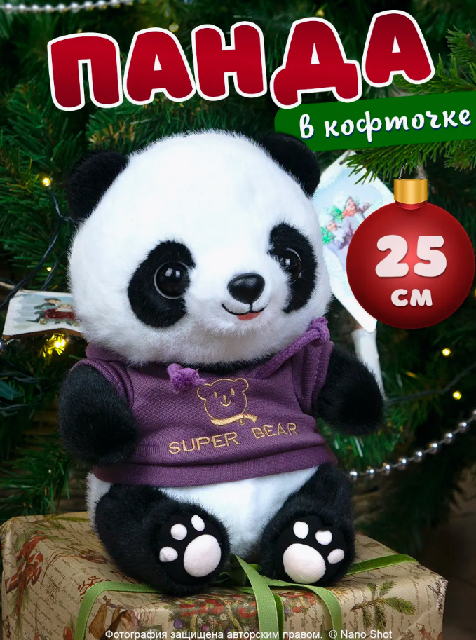 Мягкая игрушка- антистресс Панда в фиолетовой кофте, 25 см