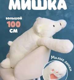 Мягкая игрушка большой плюшевый медведь, Белый мишка, 100 см