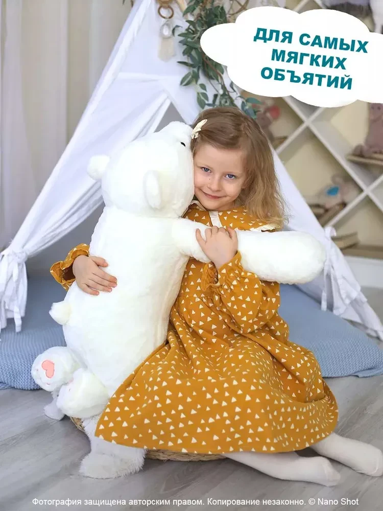 Мягкая игрушка большой плюшевый медведь, Белый мишка, 80 см