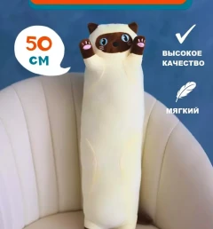 Мягкая игрушка кот-батон-багет обнимашка Сиамский кот, 50 см