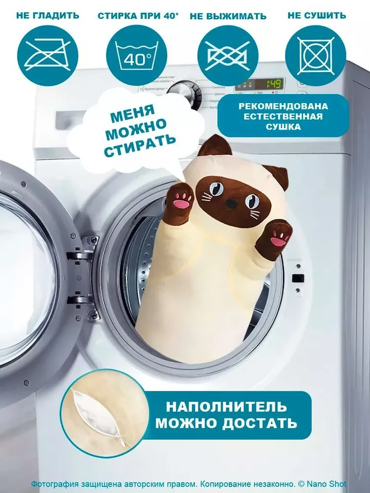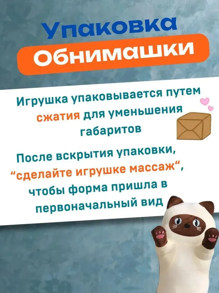 Если вы ищете идеальный подарок для ребенка или хотите порадовать любимого человека, маму, бабушку, обратите внимание на мягкую игрушку кота-батона. Этот милый Сиамский станет не только замечательным компаньоном в играх, но и уютным другом для обнимашек. Плюшевая игрушка выполнена из качественного и безопасного материала, что делает её идеальной для детей любого возраста. Она станет отличным другом для вашего ребенка, на игрушке можно спать. Уход за игрушкой не составит труда, на кошечке есть потайная молния, которую можно расстегнуть и достать наполнитель. Кроме того, кот-багет обнимашка станет отличным дополнением к детской комнате. Его можно разместить на кровати, коврике для игр или полке создавая атмосферу уюта и тепла. Эта игрушка поможет ребенку развивать воображение и творческие способности, а также станет отличным элементом для ролевых игр. Не забывайте, что такой подарок будет радовать не только детей, но и взрослых. Мягкий котик может стать оригинальным элементом декора, а также отличным антистрессом для взрослых. Плюшевый друг поможет расслабиться и отвлечься от повседневных забот. Этот милый кот- батон будет радовать Вас своей милой мордочкой.