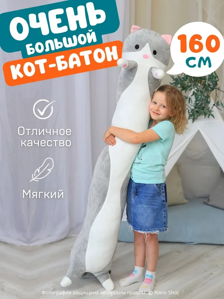 Ищете подарок для малыша, ребенка, подростка, взрослого или любимого человека? Мягкая игрушка Кот-батон - отличный выбор! Этот милый котик станет верным другом на протяжении многих лет. Он развивает у детей чувство уюта и безопасности, а также помогает развивать моторику и воображение. Благодаря мягкости и безопасности материалов, кот-батон подходит даже для новорожденных. Кот-батон идеально подходит как для мальчиков, так и для девочек. Его можно использовать как игрушку для дома, как подушку, так и для прогулок на свежем воздухе, можно спать на нём или брать в дорогу. Этот мягкий котик станет отличным подарком к любому празднику - день рождения, Новый год или просто так, чтобы порадовать близкого человека. Не упустите возможность порадовать родного человека прекрасным подарком - мягкой игрушкой- обнимашкой Кот-батоном!