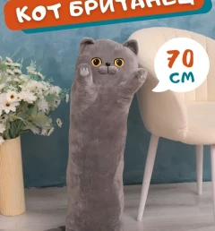 Мягкая игрушка кот-батон-сосиска Британец, 70 см