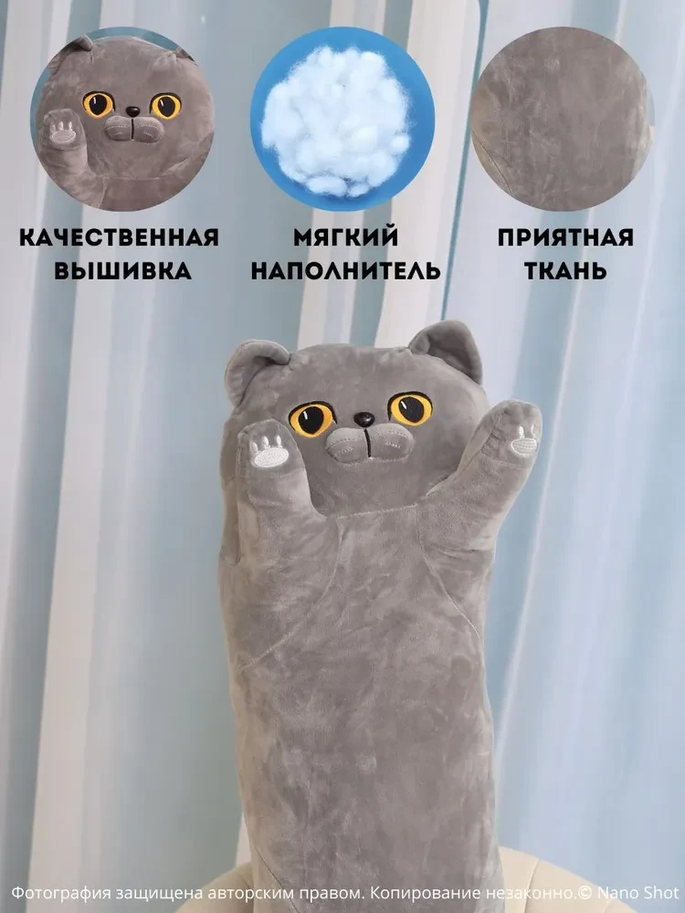 Ищете идеальный подарок для своего ребёнка? Обратите внимание на мягкую игрушку-подушку серого кота британца. Этот милый и очаровательный друг станет не только замечательным элементом интерьера, но и верным товарищем в играх и развлечениях. Котик выполнен из высококачественных материалов, что делает её безопасной для детей любого возраста. Мягкий котик станет отличным компаньоном как для девочек, так и для мальчиков, для взрослых. Его можно взять с собой в поездку, на прогулку. Благодаря своей форме и размеру, игрушка прекрасно подходит для обниманий и игр, помогая развивать у детей творческие способности. Котик станет не только игрушкой, но и уютной подушкой для комфортного сна. Удобство в уходе также является важным аспектом. Мягкую игрушку можно легко стирать в стиральной машине, котёнок имеет потайную молнию, которую можно расстегнуть и достать наполнитель. Котик отлично впишется в любой интерьер и станет ярким акцентом. Эта игрушка станет идеальным подарком на день рождения или любое другое торжество. Мягкая подушка-котик — это не просто игрушка, а настоящий друг, который будет радовать вашего ребенка каждый день.
