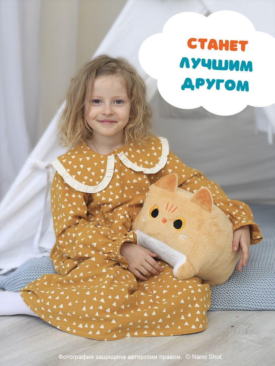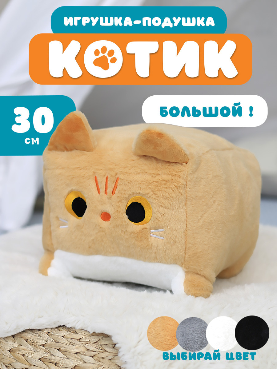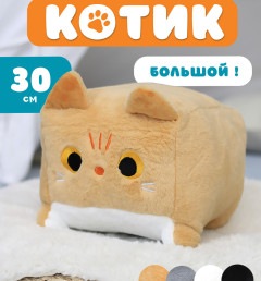 Мягкая игрушка кот-кирпичик кото куб глазастый квадратный котик, рыжий 30 см