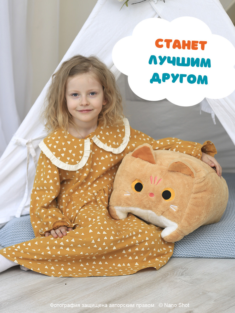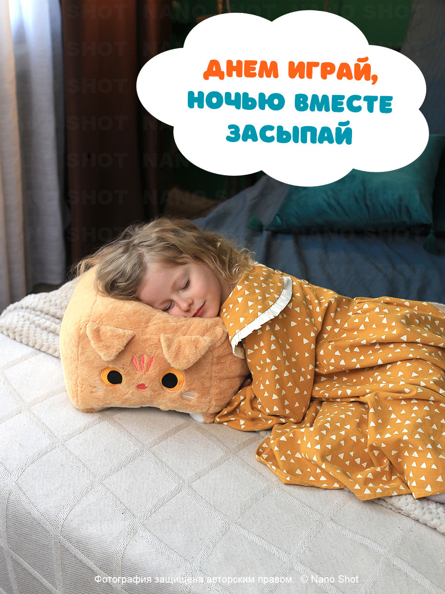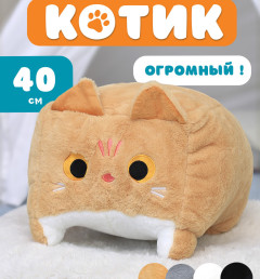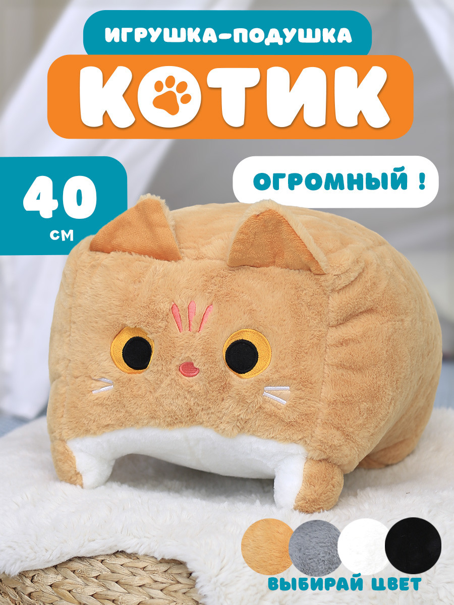 Мягкая игрушка кот-кирпичик кото куб глазастый квадратный котик, рыжий 40 см