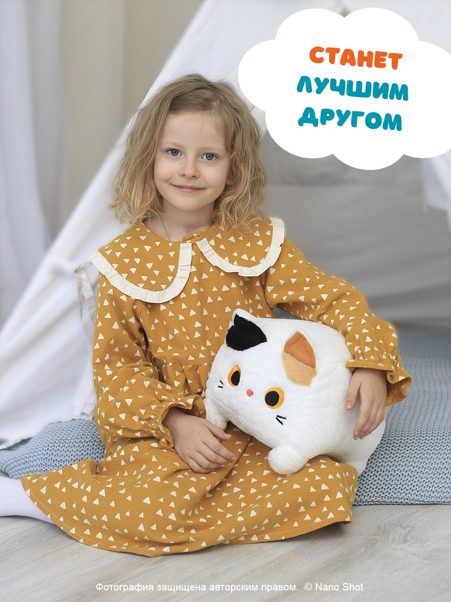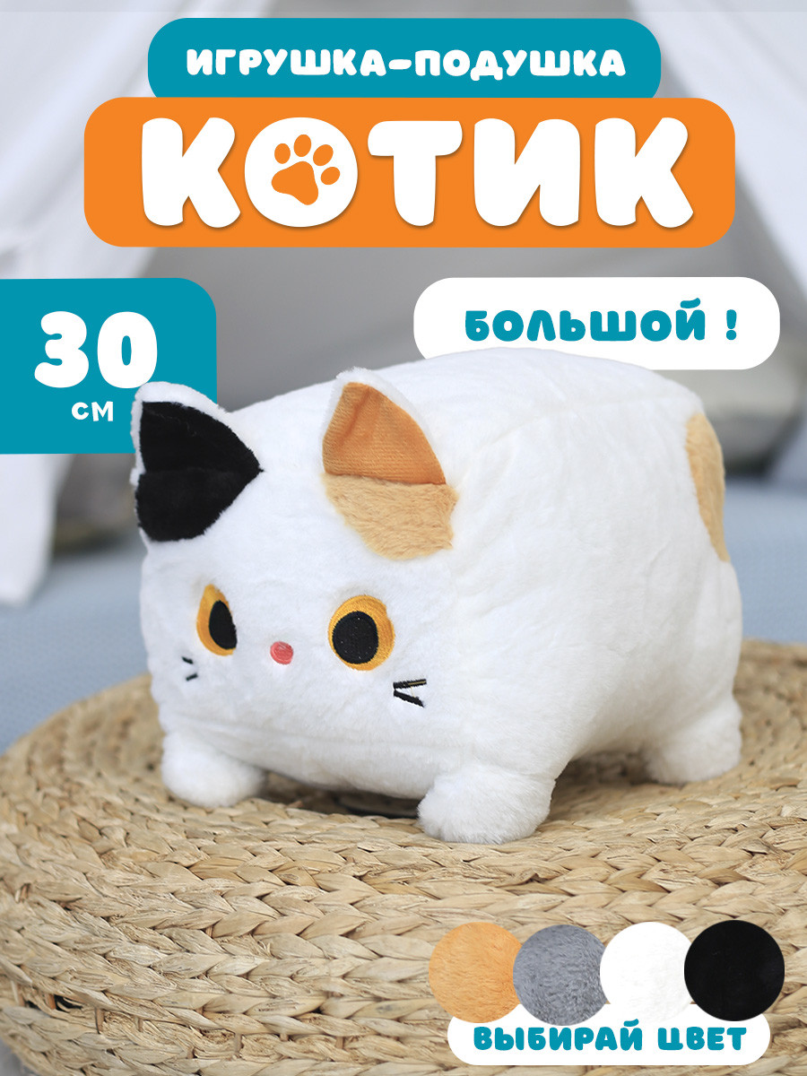 Мягкая игрушка кот-кирпичик котокуб глазастый квадратный котик, белый 30 см