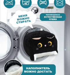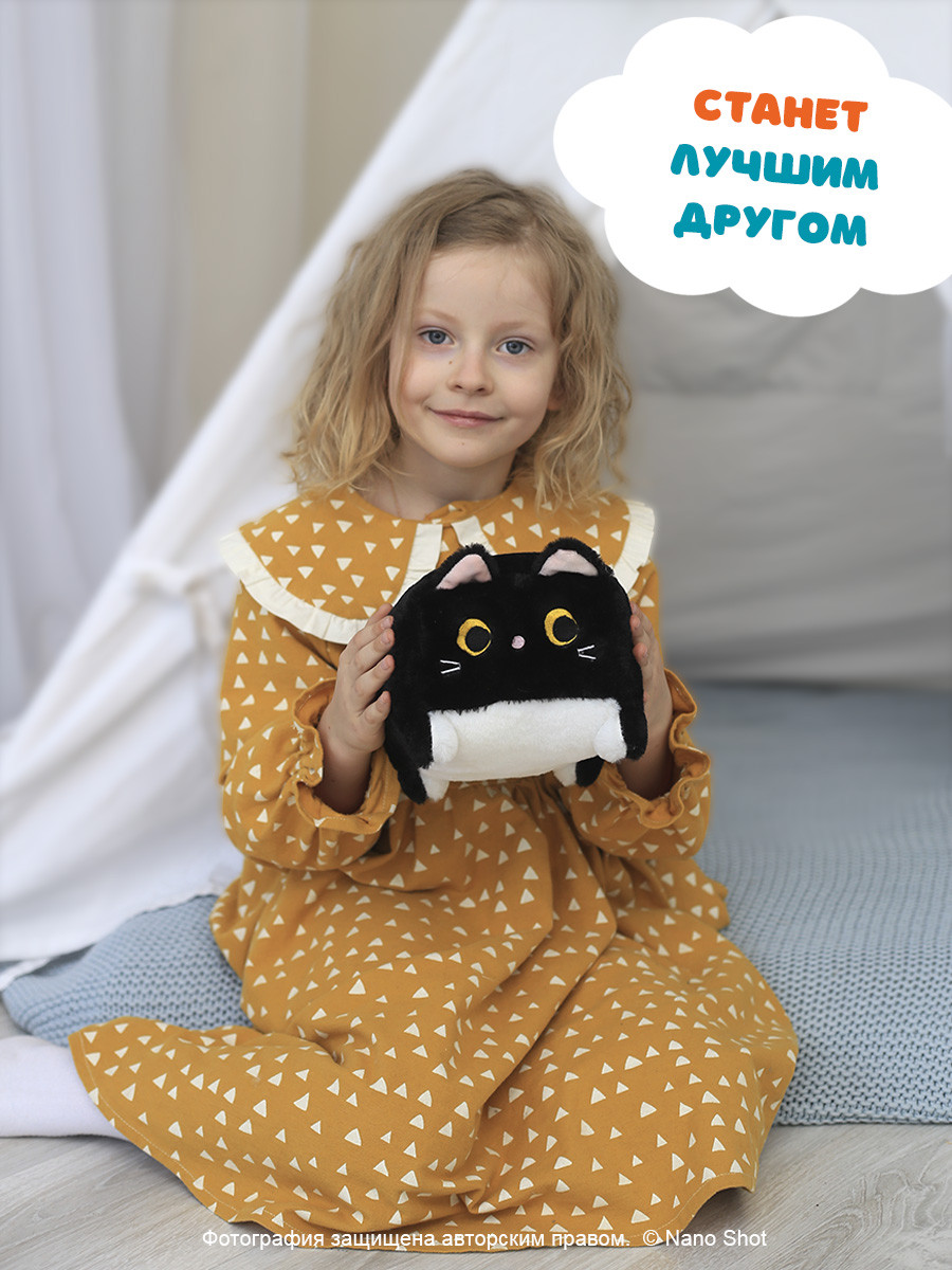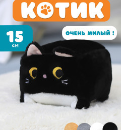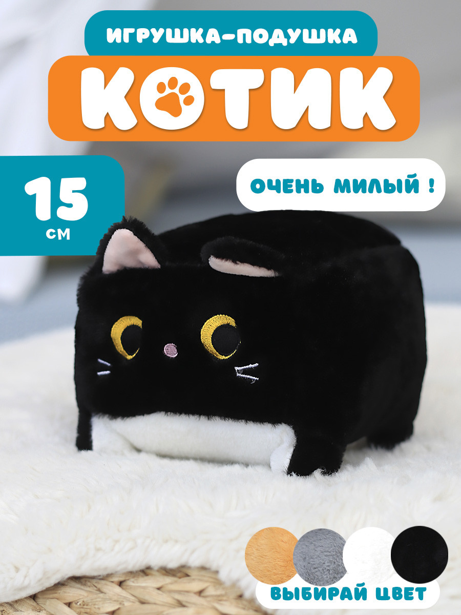 Мягкая игрушка кот-кирпичик котокуб глазастый квадратный котик, черный 15 см