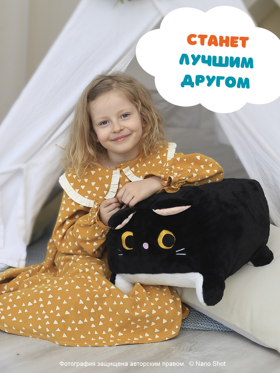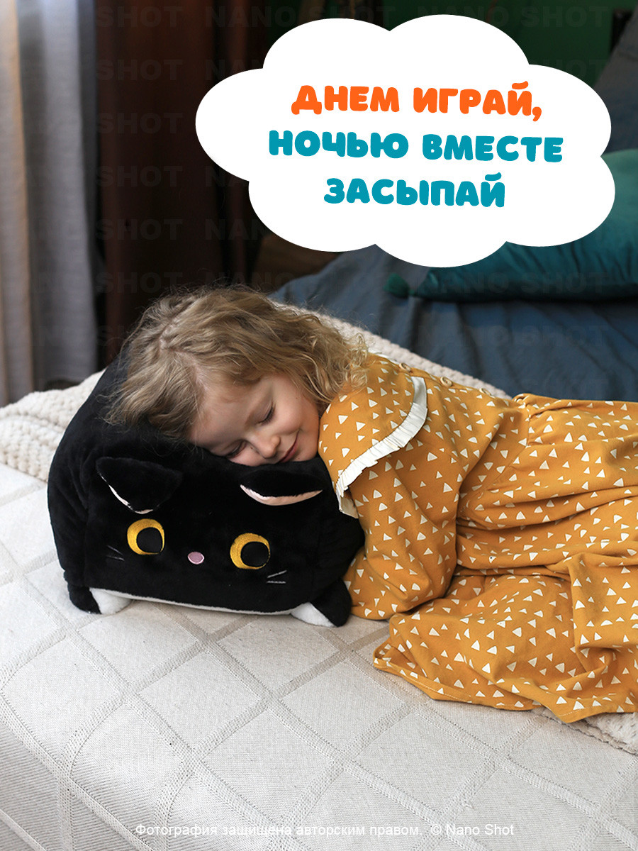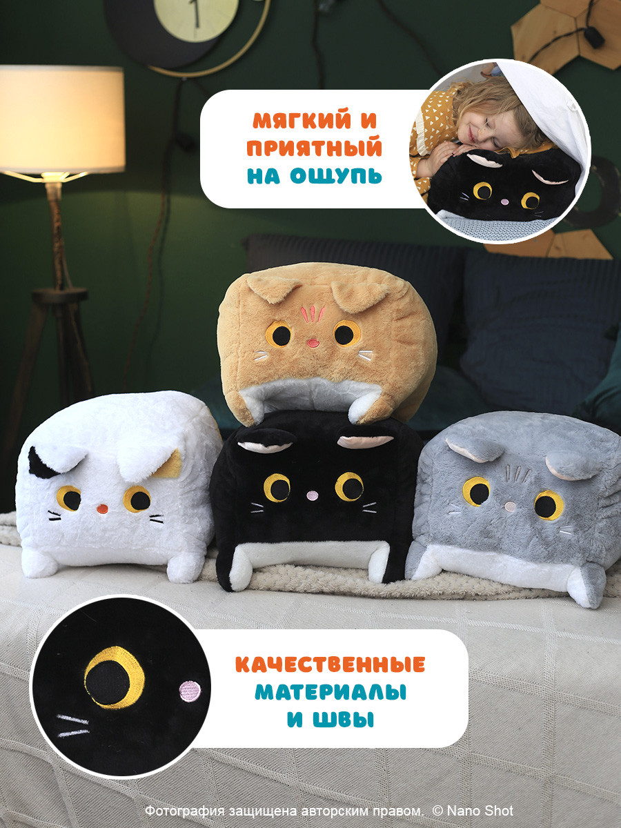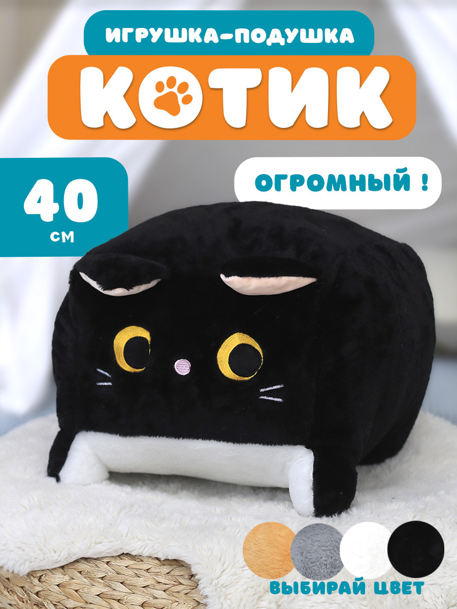 Мягкая игрушка кот-кирпичик котокуб глазастый квадратный котик, черный 40 см