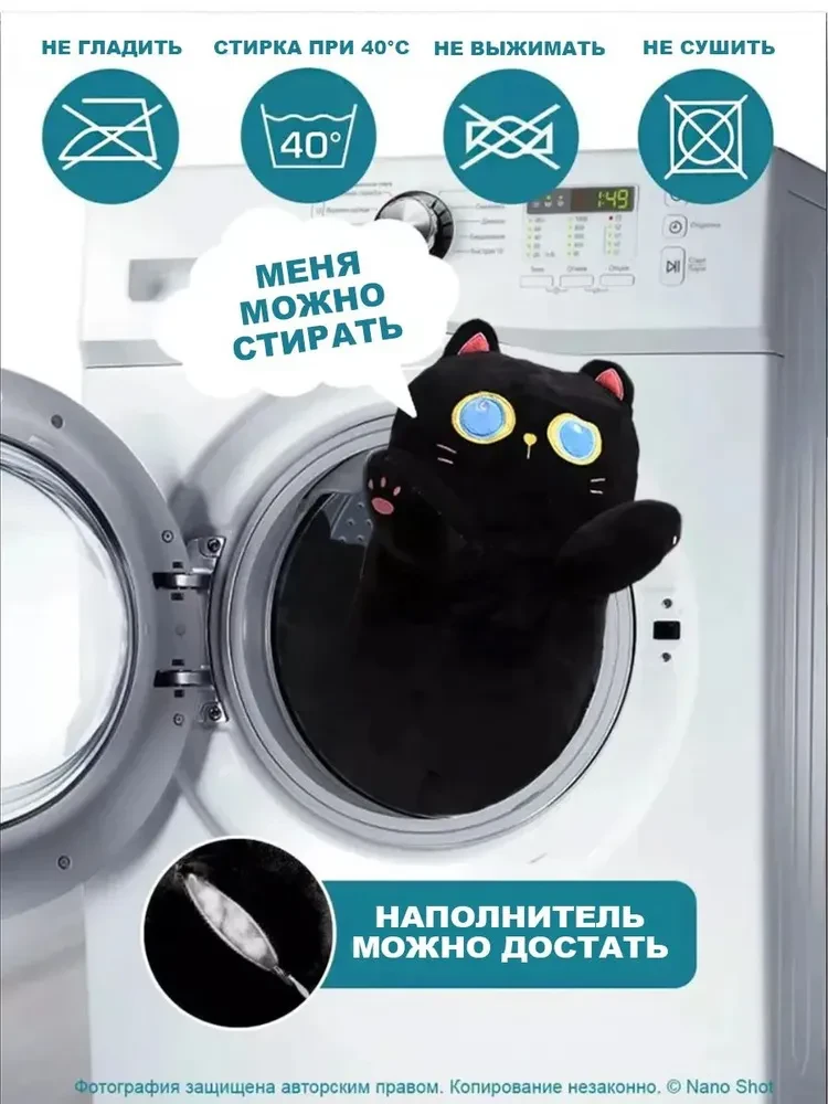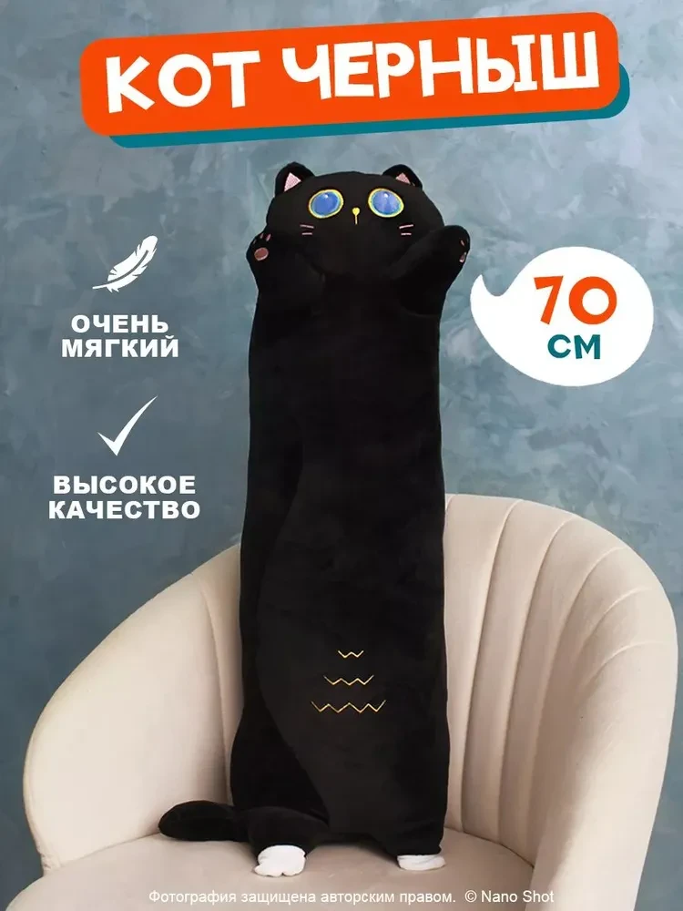 Эта милейшая игрушка Кошка обнимашка - очень мягкая и приятная на ощупь. Плюшевый котик имеет антистрессовый эффект, успокаивает и расслабляет как детей, так и взрослых. Большая длинная мягкая Кот игрушка- подушка разных размеров станет отличным подарком и сюрпризом. Дети будут счастливы такому мягкому другу. Игрушка-сосиска котик подходит для любого интерьера, в детской комнате она обязательно создаст уют. Данную игрушку с легкостью можно взять с собой в машину, она будет верным спутником вашего ребенка в поездке, и на ней можно мягко спать, как на подушке. Мягкая игрушка для детей экологична и гипоаллергенна. Игрушка батон отлична тем, что ее можно стирать в машине, как с наполнителем, так и без него, благодаря наличию молнии.