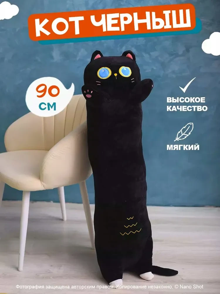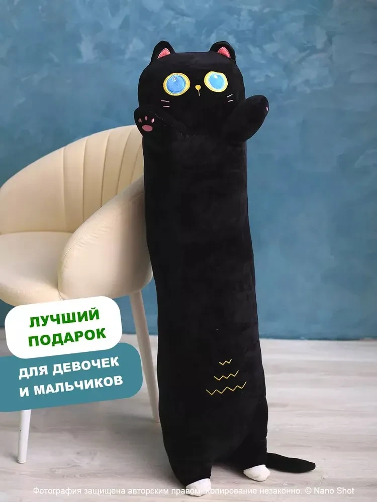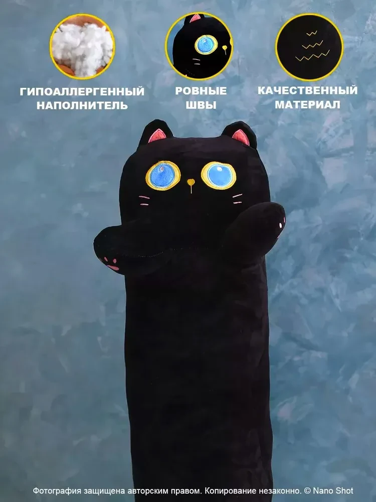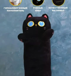 Эта милейшая игрушка Кошка обнимашка - очень мягкая и приятная на ощупь. Плюшевый котик имеет антистрессовый эффект, успокаивает и расслабляет как детей, так и взрослых. Большая длинная мягкая Кот игрушка- подушка разных размеров станет отличным подарком и сюрпризом. Дети будут счастливы такому мягкому другу. Игрушка-сосиска котик подходит для любого интерьера, в детской комнате она обязательно создаст уют. Данную игрушку с легкостью можно взять с собой в машину, она будет верным спутником вашего ребенка в поездке, и на ней можно мягко спать, как на подушке. Мягкая игрушка для детей экологична и гипоаллергенна. Игрушка батон отлична тем, что ее можно стирать в машине, как с наполнителем, так и без него, благодаря наличию молнии.