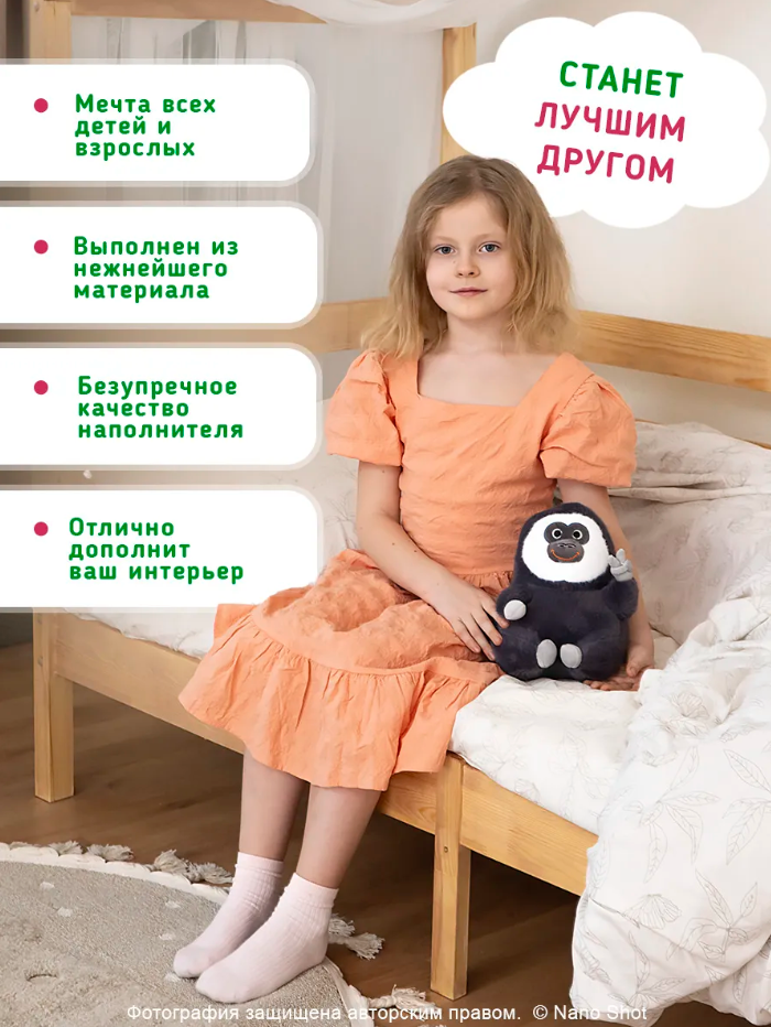 Представляем вашему вниманию уникальную мягкую игрушку гориллу! Эта милая обезьнка станет идеальным подарком для ребенка. Его мягкая текстура и приятный на ощупь материал позволят ребенку обниматься с ним, создавая атмосферу уюта и спокойствия. Игрушка отлично подходит как для девочек, так и для мальчиков, и станет верным спутником в играх и во время отдыха. Горилла игрушка – это не просто игрушка, но и функциональная подушка, которая поможет вашему ребенку расслабиться и уснуть. Обезьяна это прекрасный антистресс, обнимешь и сразу улыбка!