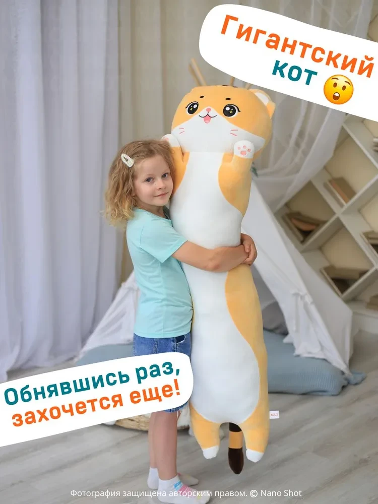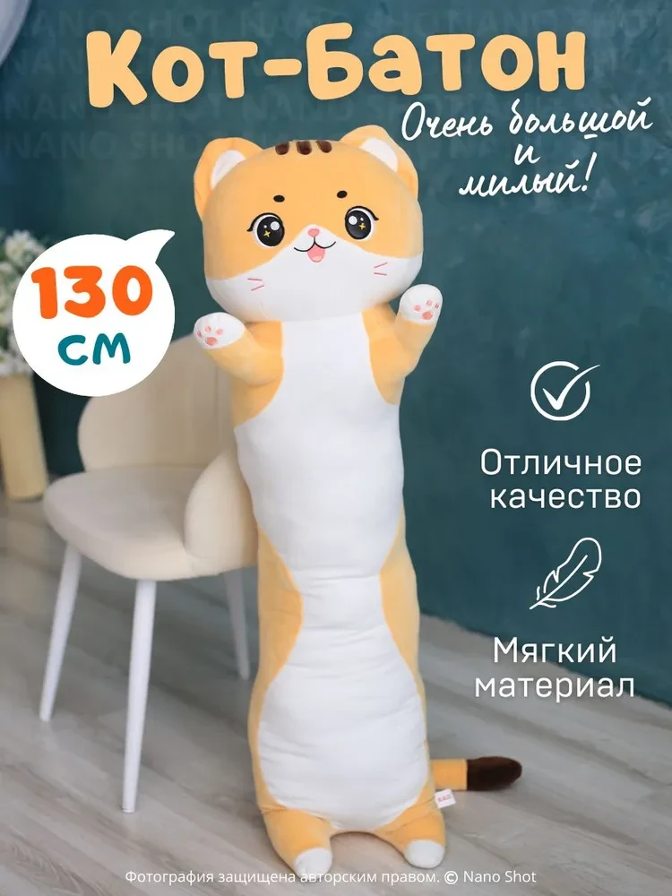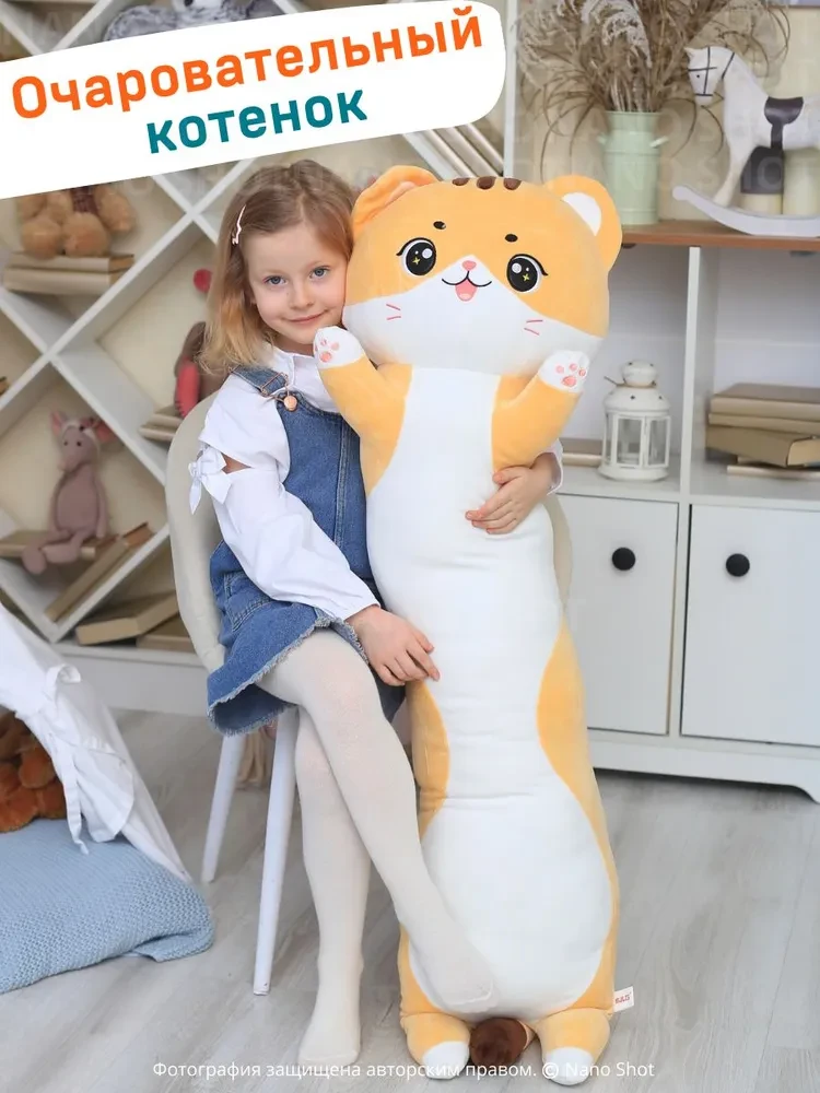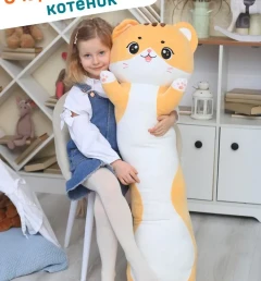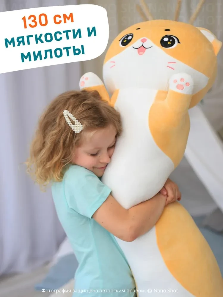 Мягкая игрушка-обнимашка батон Милая Кошечка, рыжий 130 см
