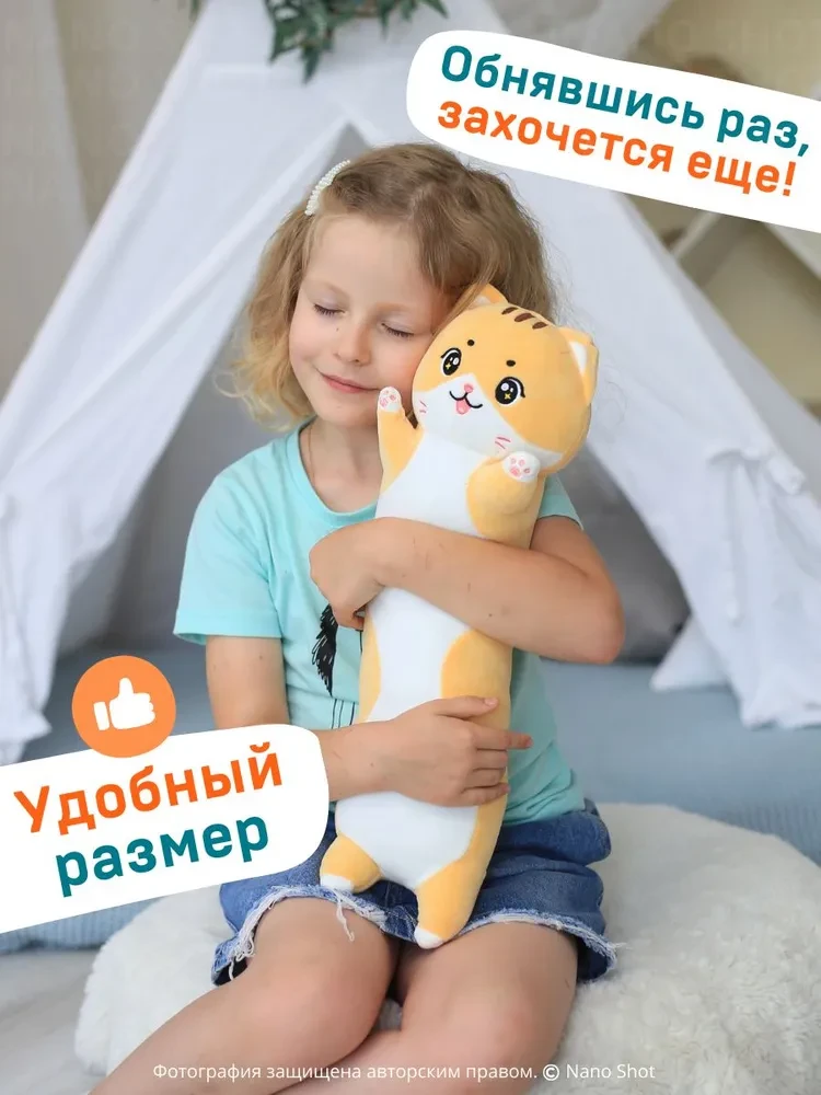 Мягкая игрушка-обнимашка Милая кошечка — это идеальный подарок для детей, взрослые будут в восторге от котика тоже! Эта плюшевая игрушка не только украсит детскую комнату, но и станет незаменимым спутником в дневных играх и вечерних объятиях. Кошечка отлично подходит для обнимания, что помогает детям чувствовать себя уютно и защищенно. Котенка можно использовать в качестве подушки во время отдыха. Подарите вашему ребенку радость и комфорт с этой замечательной игрушкой. Она станет не только предметом для игр, но и верным другом, который всегда будет рядом. Поддержите развитие вашего малыша с помощью игрушки, которая способствует эмоциональному комфорту и удовлетворению потребности в общении, с котёнком можно играть в ролевые игры, котика можно использовать, как антистресс- обнимите его и Вы сразу улыбнетесь. Не упустите возможность порадовать своих близких. Мягкая игрушка-обнимашка станет прекрасным выбором для любого праздника, будь то день рождения, рождение малыша или просто знак внимания. Позвольте ребенку наслаждаться игрой с милой кошечкой, которая принесет в дом тепло и радость.
