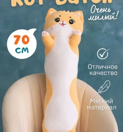 Мягкая игрушка-обнимашка Милая кошечка — это идеальный подарок для детей, взрослые будут в восторге от котика тоже! Эта плюшевая игрушка не только украсит детскую комнату, но и станет незаменимым спутником в дневных играх и вечерних объятиях. Кошечка отлично подходит для обнимания, что помогает детям чувствовать себя уютно и защищенно. Котенка можно использовать в качестве подушки во время отдыха. Подарите вашему ребенку радость и комфорт с этой замечательной игрушкой. Она станет не только предметом для игр, но и верным другом, который всегда будет рядом. Поддержите развитие вашего малыша с помощью игрушки, которая способствует эмоциональному комфорту и удовлетворению потребности в общении, с котёнком можно играть в ролевые игры, котика можно использовать, как антистресс- обнимите его и Вы сразу улыбнетесь. Не упустите возможность порадовать своих близких. Мягкая игрушка-обнимашка станет прекрасным выбором для любого праздника, будь то день рождения, рождение малыша или просто знак внимания. Позвольте ребенку наслаждаться игрой с милой кошечкой, которая принесет в дом тепло и радость.