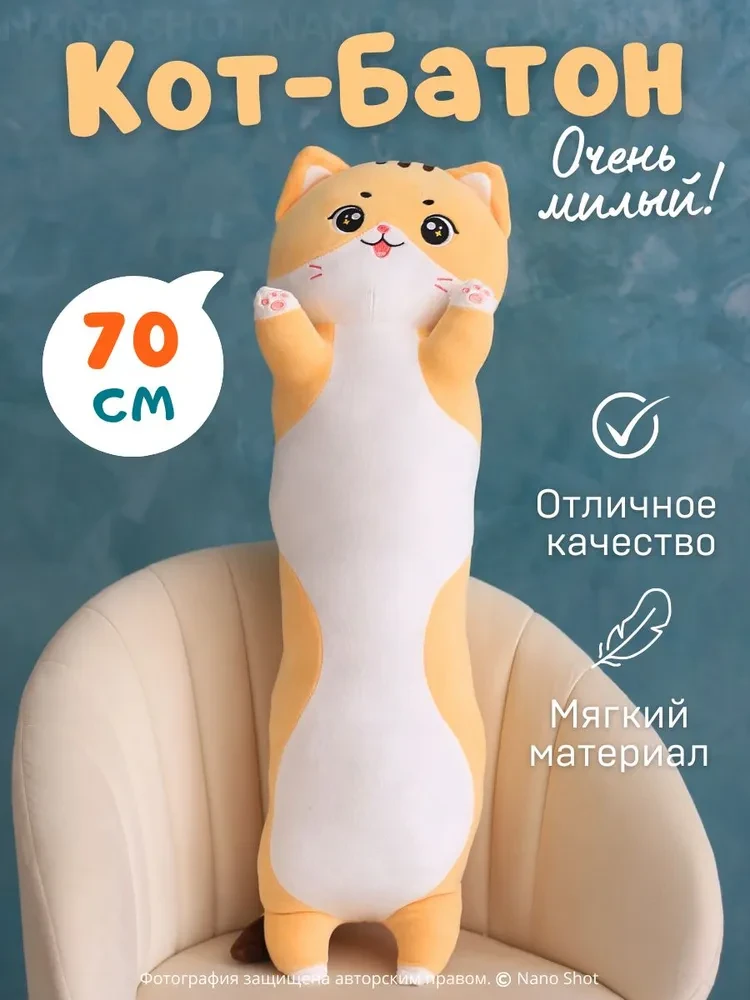 Мягкая игрушка-обнимашка батон Милая Кошечка, рыжий 70 см
