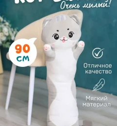 Мягкая игрушка-обнимашка батон Милая Кошечка, серый 90 см