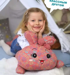 илая игрушка-кролик, от которой в восторге взрослые и дети! Можно использовать в качестве подушки, украшения для интерьера или как игрушку для ребёнка.Игрушка-зайчик гарантирует суперприятные мягкие обнимашки с эффектом антистресс. Внешний материал с добавлением хлопка и в очень оригинальной расцветке. Внутри игрушки безопасный гипоаллергенный наполнитель. Все декоративные детали и элементы вышиты, швы тщательно обработаны. Наполнитель можно достать через специальное отверстие на молнии, а чехол постирать.