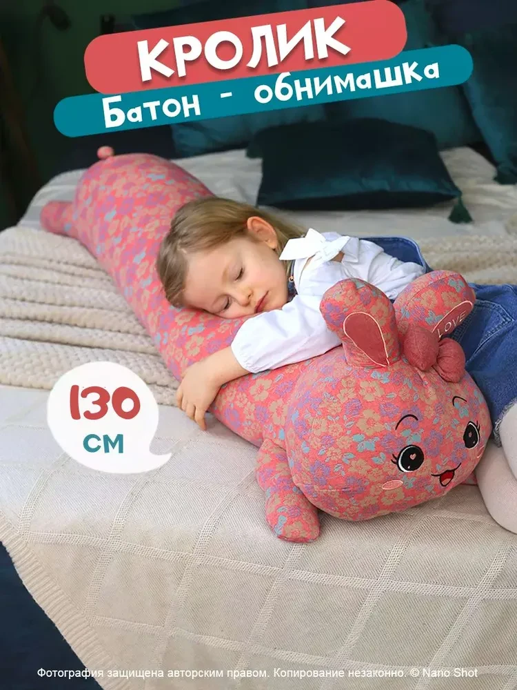 Мягкая игрушка-обнимашка батон Розовый Зайчик, 130 см
