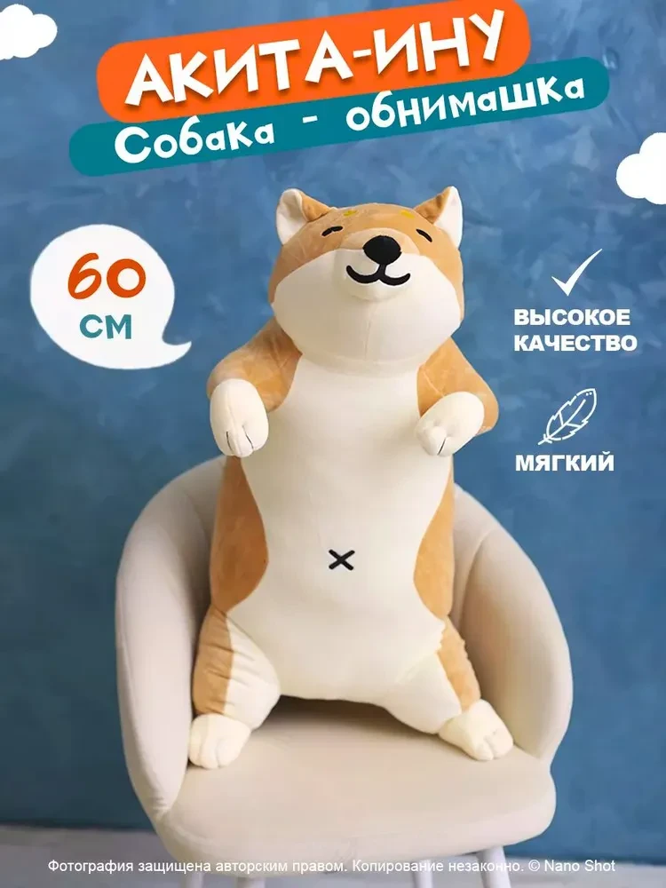 Ищете подарок- игрушки мягкие для девочек или мальчиков? Игрушка мягкая - обнимашка Собака акита-ину идеально подойдет как подарок для девочки или мальчика, для взрослого или любимого человека. Эта игрушка собачка размером 60 см станет отличным другом. Мягкая игрушка собака выполнена из мягкого материала, который приятен на ощупь и безопасен для детей. Ее можно стирать в стиральной машине, на игрушке есть потайная молния, можно вытащить наполнитель. Не упустите возможность порадовать близкого человека прекрасным подарком- собака батон- это, также, подушка обнимашка для сна! Она такая мягкая, комфортная и классная! Приобретите мягкую игрушку обнимашку и увидите, сколько радости Вы подарите!