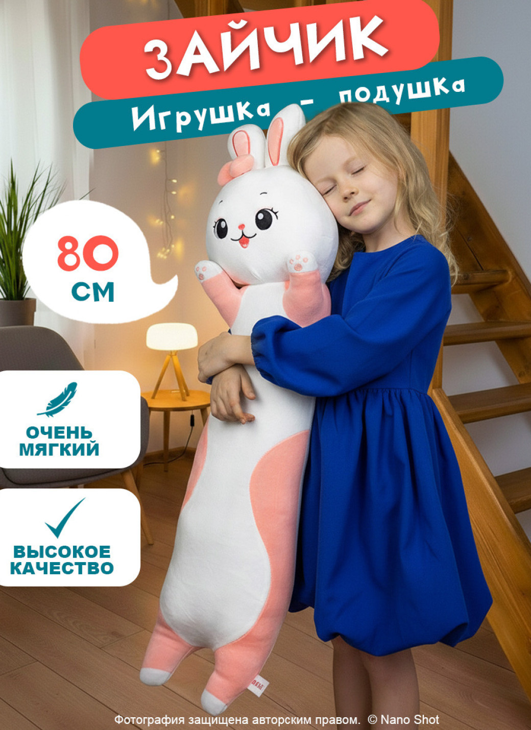 Ищете идеальный подарок для своего малыша или близкого человека? Обратите внимание на нашу мягкую игрушку в виде зайца батона! Это не просто игрушка, а настоящий друг и верный спутник, который станет любимцем как для девочек, так и для мальчиков. Эта плюшевая игрушка — идеальное решение для сна. Благодаря своим размерам и мягкости, зайчик станет отличной подушкой для комфортного отдыха. Он создаст уютную атмосферу и поможет расслабиться после долгого дня. Мягкая игрушка зайка также прекрасно подходит для обнимашек — ваш ребенок сможет брать его с собой везде, будь то прогулка или поездка. Плюшевый заяц станет настоящим украшением детской комнаты. Он не только радует глаз, но и может использоваться в качестве интерьерной игрушки. Милые игрушки, такие как этот зайчик, добавят тепла и уюта в любое пространство. Кроме того, это отличный вариант для подарка новорожденному — такой сюрприз обязательно вызовет улыбку на лице родителей и малыша. В нашем ассортименте вы найдете мягкие игрушки больших размеров, которые идеально подходят для детей любого возраста. Игрушка зайка станет отличным спутником для игр и обучения, а также поможет развивать воображение. Она также может служить антистрессом для взрослых — мягкий кролик станет отличным способом снять напряжение после трудного рабочего дня. Не упустите возможность порадовать своих близких и сделать их праздник незабываемым! Заказывая мягкую игрушку, вы получаете не только красивый подарок, но и возможность создать теплые воспоминания. Плюшевая игрушка зайка — это универсальный и практичный выбор, который обязательно найдет свое место в вашем доме. Подарите радость и уют с помощью нашего зайца батона! Это не просто игрушка — это верный друг, который будет рядом в самые важные моменты жизни вашего ребенка. Не сомневайтесь, такой подарок станет настоящим открытием для вашего малыша.
