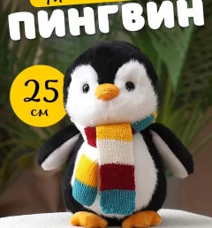 Мягкая игрушка Пингвин птица в цветном шарфике, 25 см