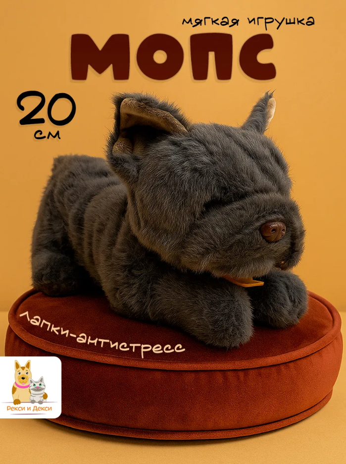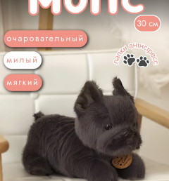 Мягкая игрушка плюшевая мопс/ собака серый, 30 см