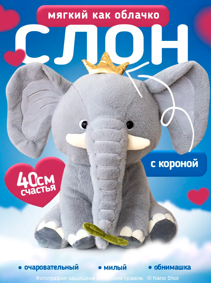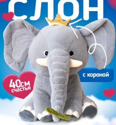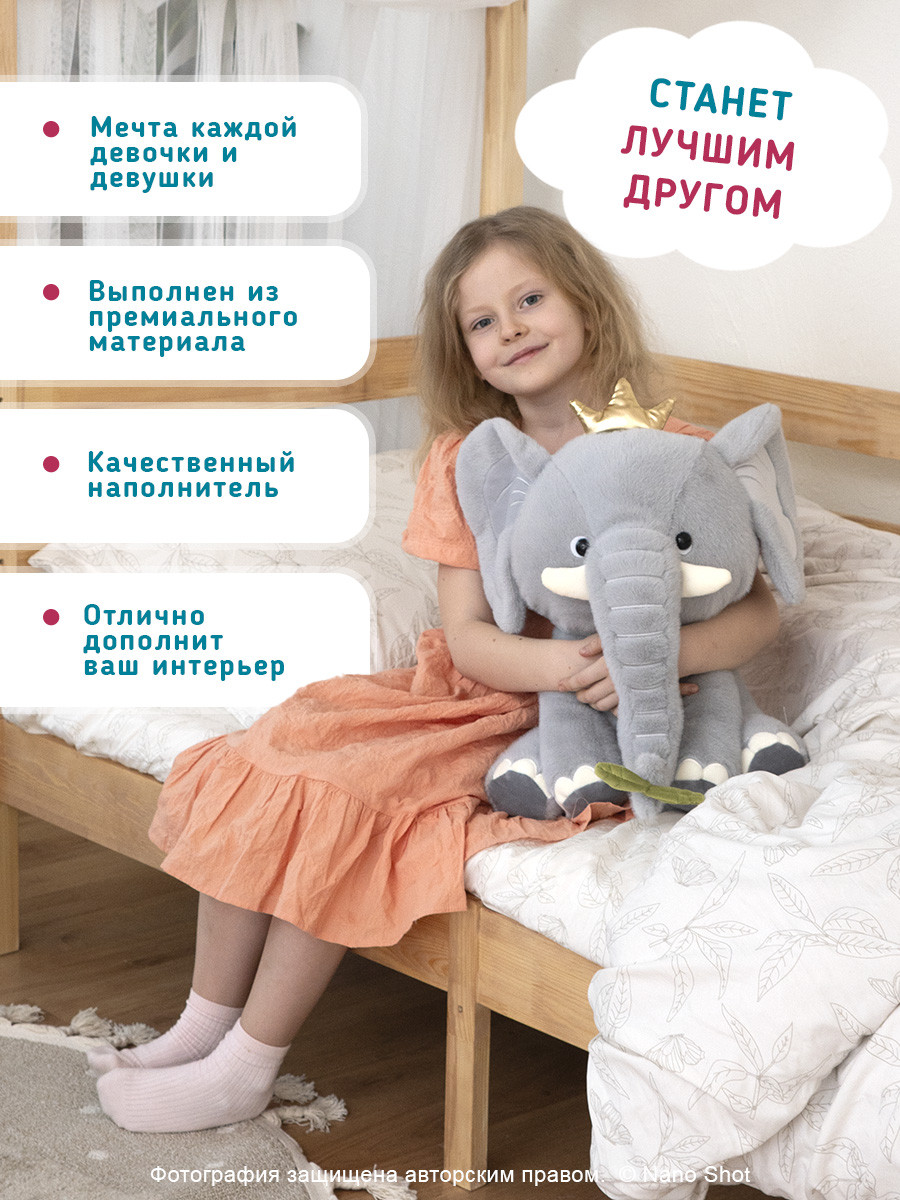 Мягкая игрушка плюшевая слоник 40 см, серый