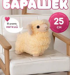 Мягкая игрушка плюшевый барашек бежевый, 25 см