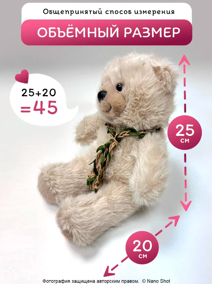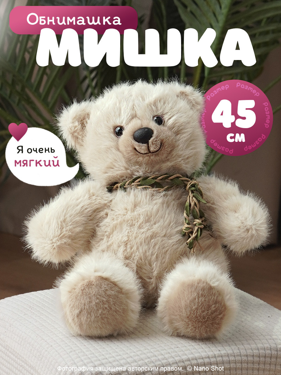Мягкая игрушка плюшевый медведь/ мишка бежевый, 45 см