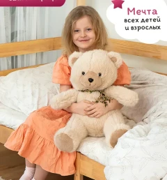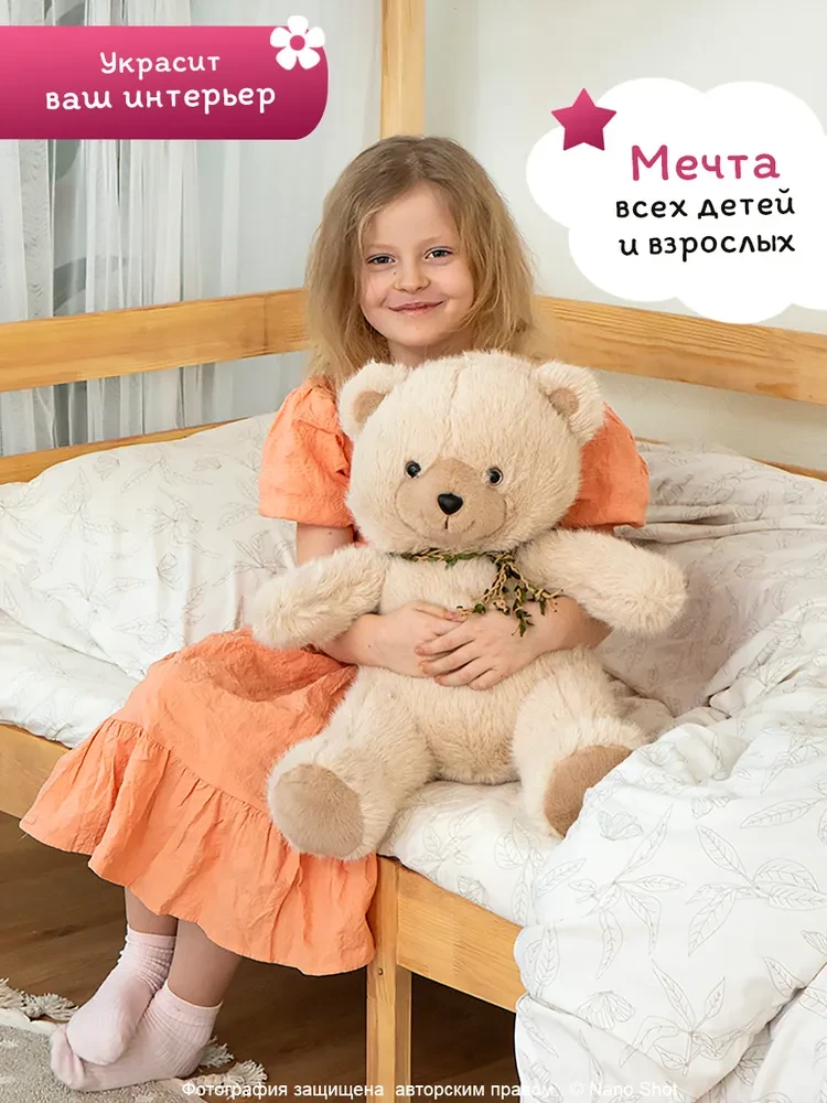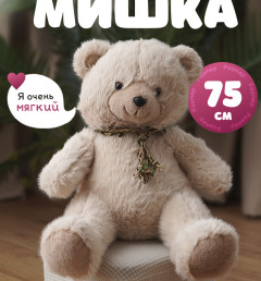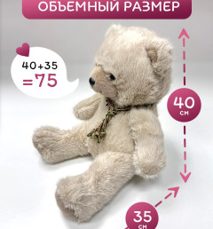Мягкая игрушка плюшевый медведь/ мишка бежевый, 75 см
